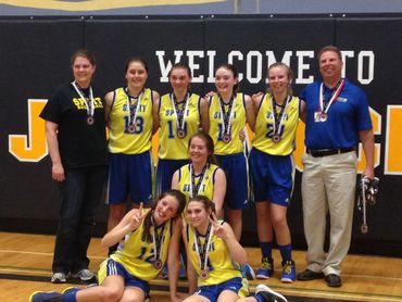 The U14 crew played the first game of the day at 9am versus the St. Thomas Shock. The court play was evenly fought all game, but the baskets just didn’t fall for the Spirit squad and it ended with a 20-50 loss to the Shock. Despite the result, Coach Laura Berkmortel was very positive about the heart and determination of the younger Spirit: “The girls are developing their skills as players, learning that through hard work and dedication comes success both as an individual and a team.” Their second game at 3pm versus a strong Sarnia Valhalla team packed the bleachers with superfans donning blue and gold, and waving signs to show their hometown spirit! Mieka McLinchey was team high scorer with 8 pts, and strong rebounding by McKenna Kehoe, Leyna Minten, and Claire Tamminga kept the team moving. While the girls persevered to the end and kept the 4th quarter to an even 9 points, the strong lead Valhalla took in the 3rd quarter resulted in a 47-21 loss. Assistant Coach Cassie Tamminga was proud of the strong finish: “It was a great day for girls in sport - the competition was strong, there was lots of learning, great sportsmanship and amazing community support.” The next home game is March 1st at 7pm in the SDCI gyms.